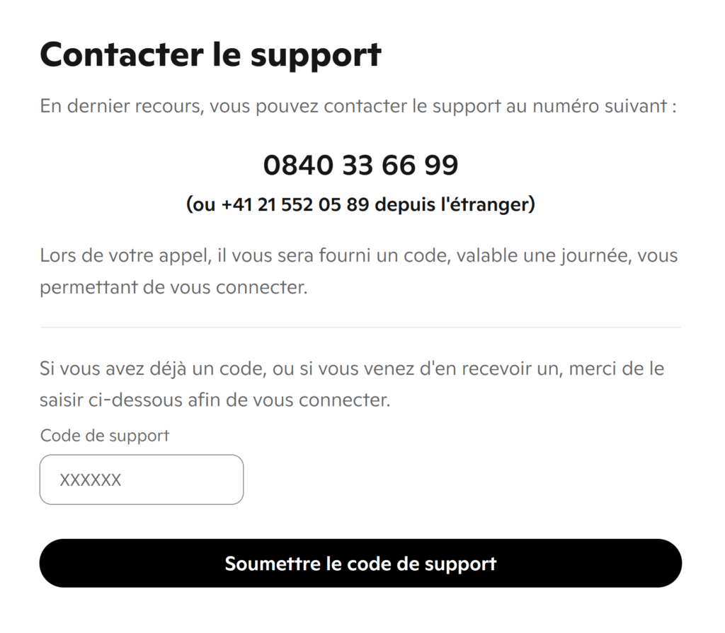 Le code transmis par notre support vous permet de vous connecter pendant 24 heures. Au-delà, vous aurez à nouveau besoin de votre moyen habituel d’authentification pour vous connecter.