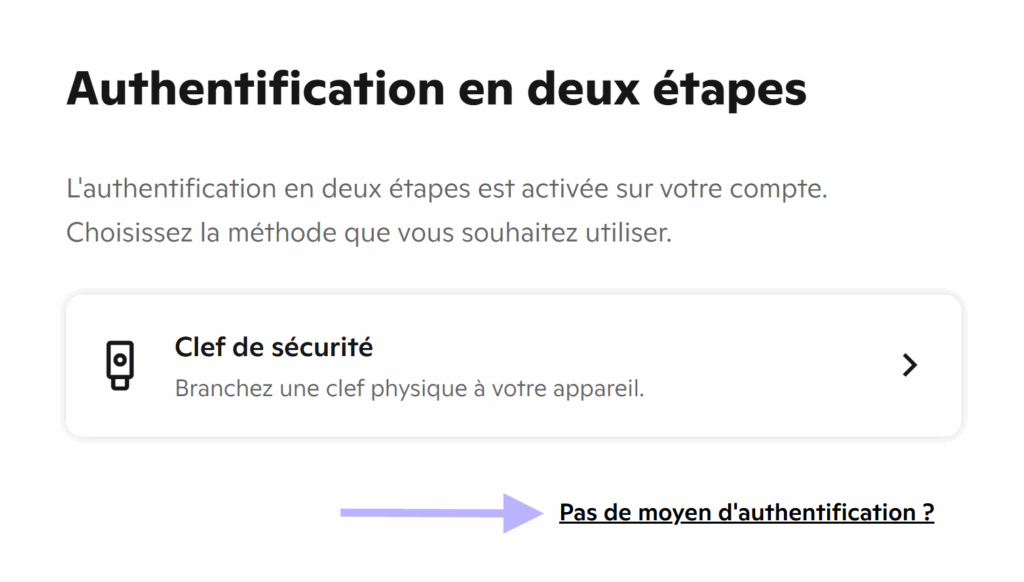 Cliquez sur Pas de moyen d’authentification ?